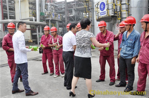 時(shí)下正值高溫酷暑,奮戰(zhàn)在生產(chǎn)一線的員工們頂烈日、戰(zhàn)高溫,為穩(wěn)定生產(chǎn)及加快檢修進(jìn)度,員工們揮灑汗水,正接受著高溫“烤”驗(yàn)。8月6日上午,市政府副秘書(shū)長(zhǎng)趙志賀,市總黨組書(shū)記、工會(huì)副主席房繼紅,在市安監(jiān)局局長(zhǎng)李哲、市化工協(xié)會(huì)會(huì)長(zhǎng)李智的陪同下,蒞臨昊源集團(tuán),看望慰問(wèn)高溫期間依然堅(jiān)守在生產(chǎn)一線的昊源員工,關(guān)切地詢(xún)問(wèn)生產(chǎn)和員工生活情況,并為員工送上防暑降溫物品。