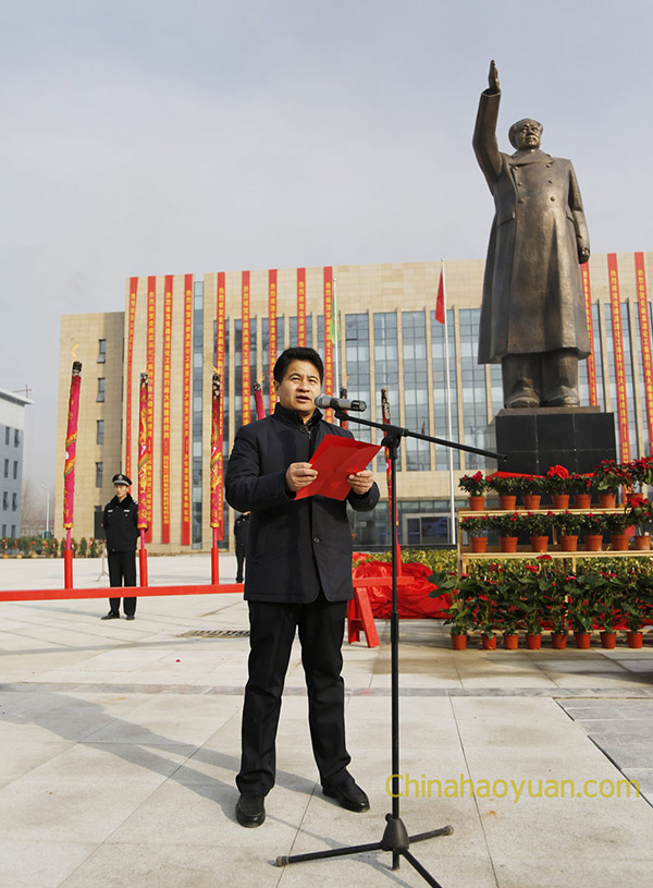 12月26日上午,昊源集團(tuán)有限公司阜陽煤基新材料產(chǎn)業(yè)園區(qū)項目行政大樓落成暨毛主席銅像揭幕儀式隆重舉行。昊源公司黨委書記、董事長凡殿才等公司高管出席本次儀式,副總經(jīng)理高明林主持儀式。