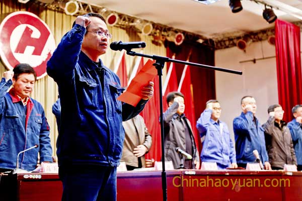 公司副總經(jīng)理張海生、鍋爐車間主任李郭、造氣車間設(shè)備員張明明,分別代表管理層、車間管理者、員工宣讀安全承諾。承諾認真履行國家法律規(guī)定的安全職責(zé),自覺遵守國家、地方法律、法規(guī)及行業(yè)標(biāo)準(zhǔn)、規(guī)范。在項目實施過程中,重視重大安全隱患的識別和控制、重視作業(yè)人員的安全行為、重視安全管理方法的更新和落實。在公司各生產(chǎn)區(qū)域嚴格遵守各項安全規(guī)定,自覺接受員工的監(jiān)督,為員工樹立表率作用,帶動和督促一線員工重視安全。
