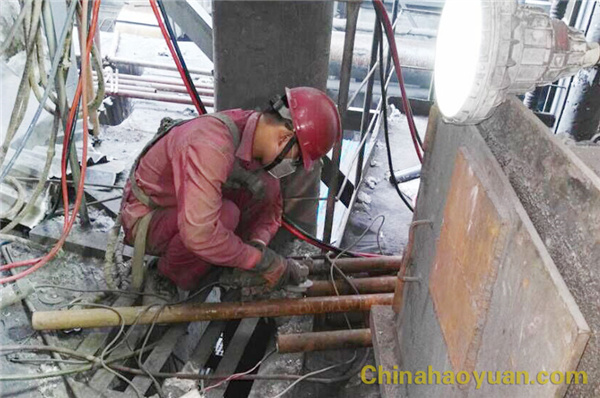 5#鍋爐系統(tǒng)停車后,動力處便安排人員對水冷壁進行全面的壁厚測量,在測量過程中發(fā)現(xiàn)水冷壁多處管壁都存在壁厚減薄的現(xiàn)象,并對減薄的管子及區(qū)域進行了標記以便后續(xù)更換。因本次5#鍋爐水冷壁通過檢測需要更換部位較多,而且在組對和焊接水冷壁過程中,對鉚焊工技術及責任心都有較高要求。為此,化機公司在接到檢修任務后,每天合理安排人員并及時與鍋爐車間進行交流溝通,派出精兵強將,加班加點積極配合鍋爐車間對5#鍋爐進行檢修,爭取在保證安全的前提下,用最短的時間保質保量完成本次5#鍋爐檢修工作。