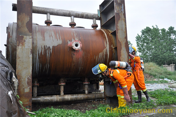 演練由公司安全副總工劉升指揮,保衛(wèi)處處長蔣春生負責(zé)演練協(xié)調(diào)。劉升向消防隊員發(fā)出火災(zāi)救援指令后,不到五分鐘,消防車、氣防車就拉著警笛呼嘯而來,停到著火點的上風(fēng)口。消防隊員一方面查看火情、火勢,一方面組裝消防器具,進行即時救援。很快火勢得到控制,并隨后撲滅。這時早已穿好防化服和配戴好空氣呼吸器的防化人員,立即沖入事故現(xiàn)場,進行仔細排查現(xiàn)場情況、搜救事故現(xiàn)場人員。在反復(fù)排查,確定著火已徹底撲滅,現(xiàn)場無人員傷亡后,防化人員退出事故現(xiàn)場,演練結(jié)束。