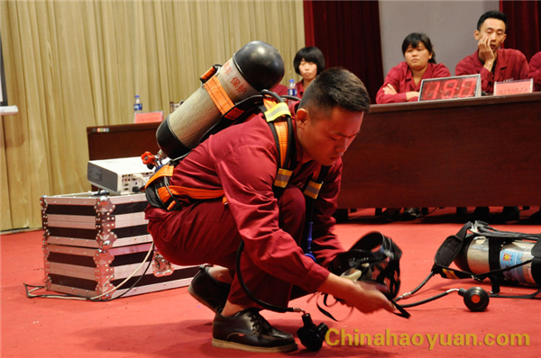 知識競賽設(shè)必答題、搶答題、風(fēng)險題、現(xiàn)場操作四個環(huán)節(jié)。比賽現(xiàn)場氣氛激烈,現(xiàn)場操作空氣呼吸器更是將比賽推向高潮。比賽過程中,還設(shè)置了觀眾搶答環(huán)節(jié),臺上臺下互動問答,普及全員安全知識,提高大家安全意識。