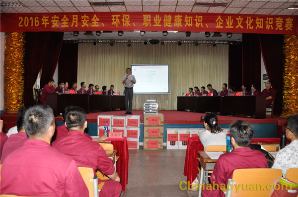 6月25日下午,昊源公司 “2016年度安全、職業(yè)健康、環(huán)保、企業(yè)文化綜合知識競賽”決賽在大禮堂舉行。公司安委會辦公室主任戚偉、安全副總工劉升、公司辦主任徐中明、生產(chǎn)辦主任李超群、動力處副處長章好田出席比賽擔(dān)任評委。
