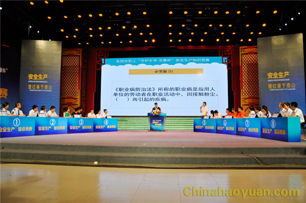 6月27日下午,由阜陽市總工會、阜陽市安監(jiān)總局聯(lián)合舉辦的阜陽市職工“守護生命.安康杯”安全知識競賽在阜陽市電視臺一號演播大廳舉行,昊源集團代表隊從全市18支代表隊脫穎而出進入決賽。