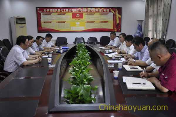 2016年8月8日,阜陽市委常委王玉峰、市政府副秘書長趙志賀、市經信委主任岳華剛、經信委副主任高文軍一行蒞臨昊源公司調研工作,昊源公司黨委書記、董事長凡殿才,副總經理楊捷、高玉磊、高明林、張海生陪同。