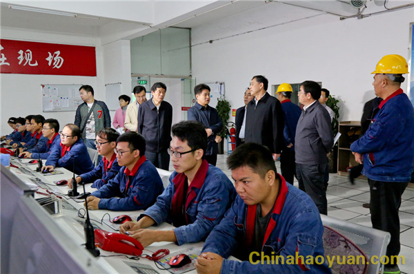 隨后,宋衛(wèi)平一行來到公司污水處理中心,查看污水處理情況。凡殿才一邊將處理后的排放水取樣給宋衛(wèi)平一行觀看,一邊向宋衛(wèi)平一行匯報(bào)昊源公司在環(huán)境保護(hù)、治理方面所采取的積極措施。他說,昊源公司多年來,一直逐年加大環(huán)境保護(hù)、治理資金投入,先后實(shí)施了污水處理、揚(yáng)塵抑制、脫硫、脫硝、噪音控制、在線實(shí)時(shí)監(jiān)控等裝置,對改善廠區(qū)及周邊環(huán)境,取得了明顯效果。