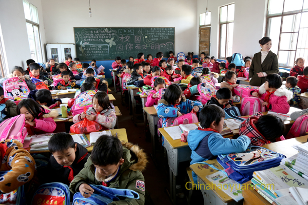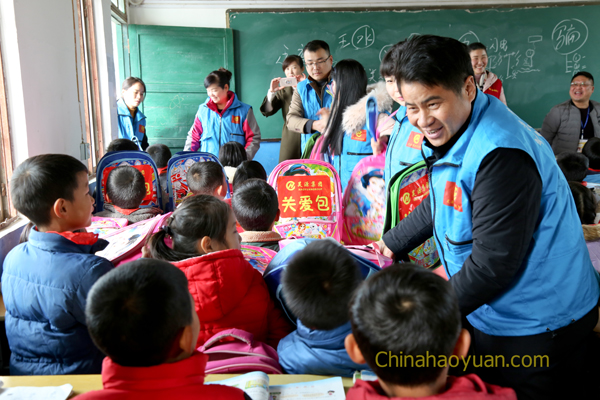 阜陽是農(nóng)業(yè)大市,常年外出務(wù)工農(nóng)民超過300萬。12月3日,在集團(tuán)公司董事長總經(jīng)理凡殿才的帶領(lǐng)下, 昊源集團(tuán)青年志愿者們驅(qū)車一個(gè)多小時(shí),來到臨泉呂寨陳小寨村小學(xué)!一進(jìn)學(xué)校就感覺到了濃濃的校園氣息,一大群活潑可愛的小朋友們在小操場上打打鬧鬧,有跳繩,做操,跑步!昊源集團(tuán)青年志愿者服務(wù)隊(duì)為孩子們送去冬日暖陽,讓需要關(guān)愛和陪伴的留守兒童感受到全社會(huì)的愛心和溫暖。凡殿才親手將關(guān)愛書包發(fā)放到每個(gè)孩子的手中,并囑咐他們父母雖然不在身邊,但是關(guān)心愛護(hù)他們的人卻有很多。