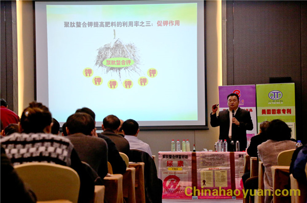 2017年1月7日,安徽昊源化工集團(tuán)有限公司聚肽螯合鉀富鋅硼尿素產(chǎn)品推介會(huì)成功召開。會(huì)議邀請(qǐng)北京巨泰科技有限公司董事長(zhǎng)魏安興、技術(shù)研發(fā)部經(jīng)理孔令亮到會(huì)作新產(chǎn)品推介,來(lái)自全國(guó)各縣市農(nóng)資經(jīng)銷商近百人參加會(huì)議。