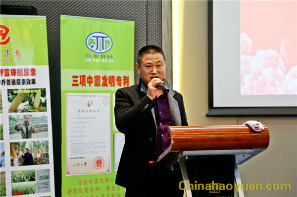 北京巨泰科技有限公司董事長(zhǎng)魏安興向參會(huì)經(jīng)銷商分析了聚肽螯合鉀富鋅硼尿素產(chǎn)品機(jī)理報(bào)告。