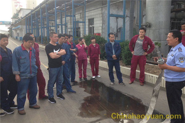 培訓首先對消防器材正確使用講解,使員工掌握消防器材使用方法和注意事項。然后,兩人一組,進行消防水帶使用實練。