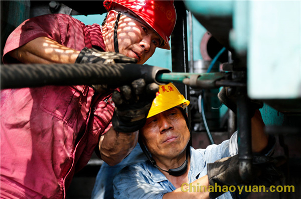 操作人員巡檢在炙熱的設(shè)備塔群中,雖然身上被烤得火辣辣的,但他們依然認真檢查著每一個控制點、每一臺機泵,測量著機泵溫度和振動,確保設(shè)備在高溫下健康、穩(wěn)定運行。