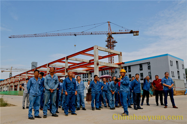 在園區(qū)項(xiàng)目建設(shè)現(xiàn)場(chǎng),公司副總經(jīng)理高明林、總經(jīng)理助理張超分別介紹了園區(qū)項(xiàng)目規(guī)劃、一期項(xiàng)目建設(shè)內(nèi)容、當(dāng)前項(xiàng)目建設(shè)進(jìn)度等。目前,園區(qū)項(xiàng)目正在緊張施工之中。所有工段基本土建結(jié)束,已全面轉(zhuǎn)入設(shè)備安裝階段。大家一邊走、一邊看、一邊聽(tīng),眼前拔地而起的一排排、一座座雄偉建筑讓人震撼,親身體會(huì)到昊源的發(fā)展速度與強(qiáng)勁。同時(shí),從心里為園區(qū)項(xiàng)目建設(shè)者點(diǎn)贊,感謝他們?yōu)榱岁辉垂究焖侔l(fā)展而默默付出。
