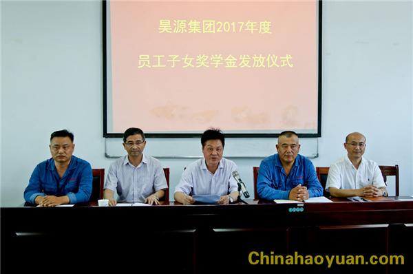 8月25日,“昊源集團2017年度員工子女獎學(xué)金發(fā)放儀式”在公司培訓(xùn)中心舉行。公司領(lǐng)導(dǎo)高玉磊、張海生、田懷廣、吳珍漢出席儀式,儀式由工會副主席戚偉主持。