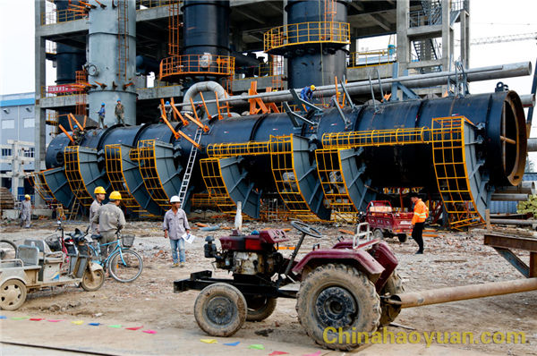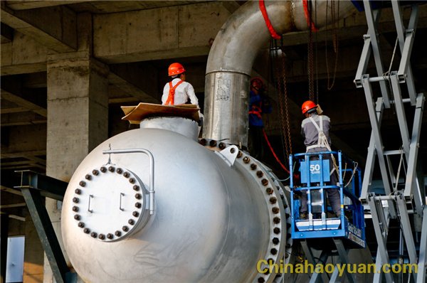 在設(shè)備安裝方面,項目配套的空分工段冷箱內(nèi)設(shè)備安裝、配管已全部結(jié)束,9月份進行試壓。室外設(shè)備也已全部就位,正在進行室外設(shè)備的配管。空壓機、增壓機、汽輪機等室內(nèi)設(shè)備正在進行安裝;鍋爐工段兩臺每小時260噸蒸汽的單體鍋爐已全部安裝結(jié)束,水壓試驗已完成,正在進行筑爐施工。鍋爐配套的電袋除塵、煙氣脫硫、煙囪、灰?guī)斓日谶M行施工,配管工作正有序推進,電氣、儀表安裝已全面展開;氣化工段配套的靜止設(shè)備、運轉(zhuǎn)設(shè)備已全部到場就位,安裝單位正在進行管道預(yù)制工作,鋼結(jié)構(gòu)封頂預(yù)計9月20號左右,屆時將全面垂直上下分開,進行整體施工推進;凈化工段變換崗位設(shè)備已到貨完畢,并就位90%,正在進行管道的預(yù)制工作;低溫甲醇洗工段主要設(shè)備全部就位,正在進行配管預(yù)制。其它工段的設(shè)備也在陸續(xù)到貨、安裝中,現(xiàn)場一派忙碌景象。
