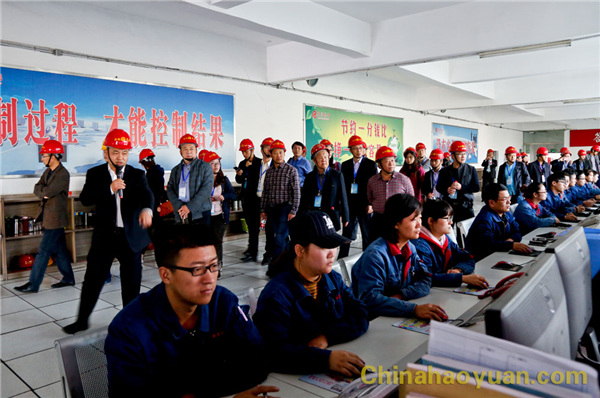 會后,與會代表在公司領(lǐng)導(dǎo)高玉磊、吳珍漢的陪同下,到昊源公司參觀交流。代表們首先來到航天爐系統(tǒng)主控室,吳珍漢向與會代表介紹了航天爐系統(tǒng)生產(chǎn)工藝及裝置特點。在污水處理總站,吳珍漢向與會代表介紹了公司HBF-N活性污泥法處理污水裝置運行情況。他說,該套水處理裝置操作彈性大、系統(tǒng)穩(wěn)定性強,同時配套中水回用裝置,生產(chǎn)淡水回用到生產(chǎn)系統(tǒng),減少原水用量,可有效節(jié)約水資源。代表們走到處理池上觀看水處理裝置運行情況,對公司水處理系統(tǒng)技術(shù)與管理表示贊賞。在航天爐系統(tǒng)氣化灰水電絮凝裝置現(xiàn)場,吳珍漢就該裝置運行原理、處理效果及經(jīng)濟效益向與會代表一一介紹,并詳細回答代表們提出的水處理系統(tǒng)應(yīng)用問題。代表們對昊源公司在水資源管理與應(yīng)用方面的不斷探索創(chuàng)新表示肯定。