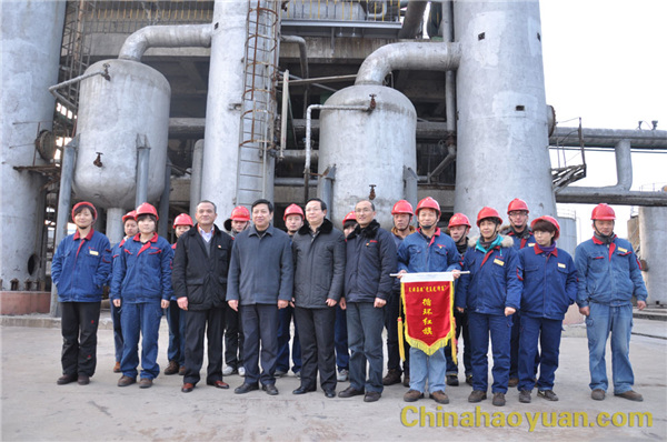 隨后,在李書記的陪同下,沈基明副書記深入到生產一線為被評為12月份“黨員文明崗位”的化工車間、建筑公司進行授旗,并與黨員代表合影留念。